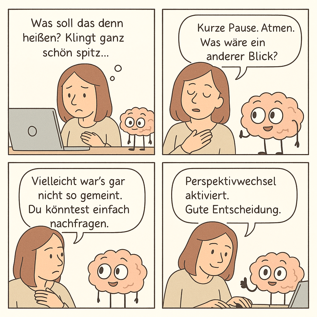 Wir haben diesen Prozess in einem kurzen Comic dargestellt – als kleine Erinnerung daran, dass du nicht ausgeliefert bist, sondern gestalten kannst: